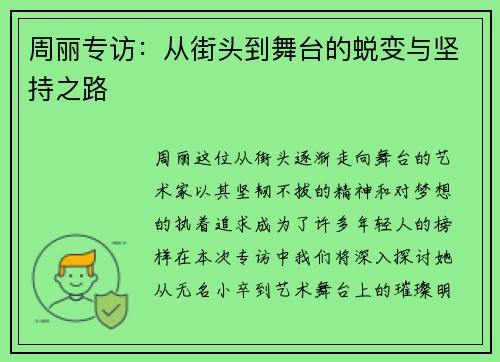 周丽专访:从街头到舞台的蜕变与坚持之路